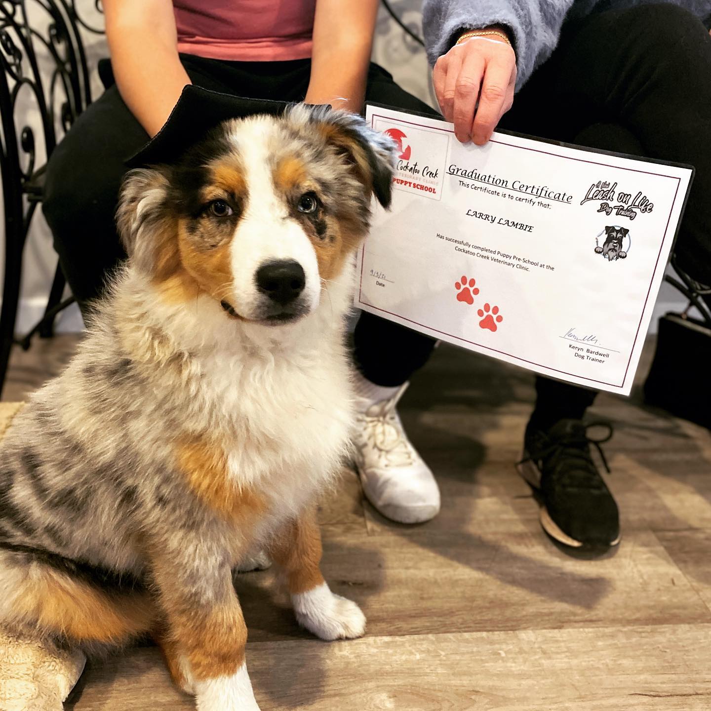 Our very experienced trainer Kerryn from A New Leash on Life Dog Training conducts a one night per week over four weeks with a treat free learning approach. Your puppy will receive a puppy pack and certificate with a few cute graduation photos posted on our social media!